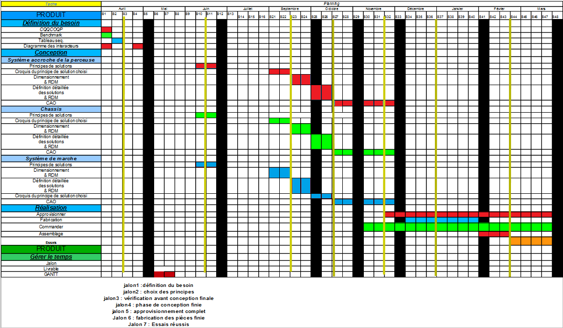 GANTT 26/10/2014 10:40 Le GANTT permet de répartir et organiser toutes les tâches du TRIEDRE et du diagramme des tâches. Il permet de voir les dates limites pour chaque tâche ainsi que les jalons et les revues nécessaires.